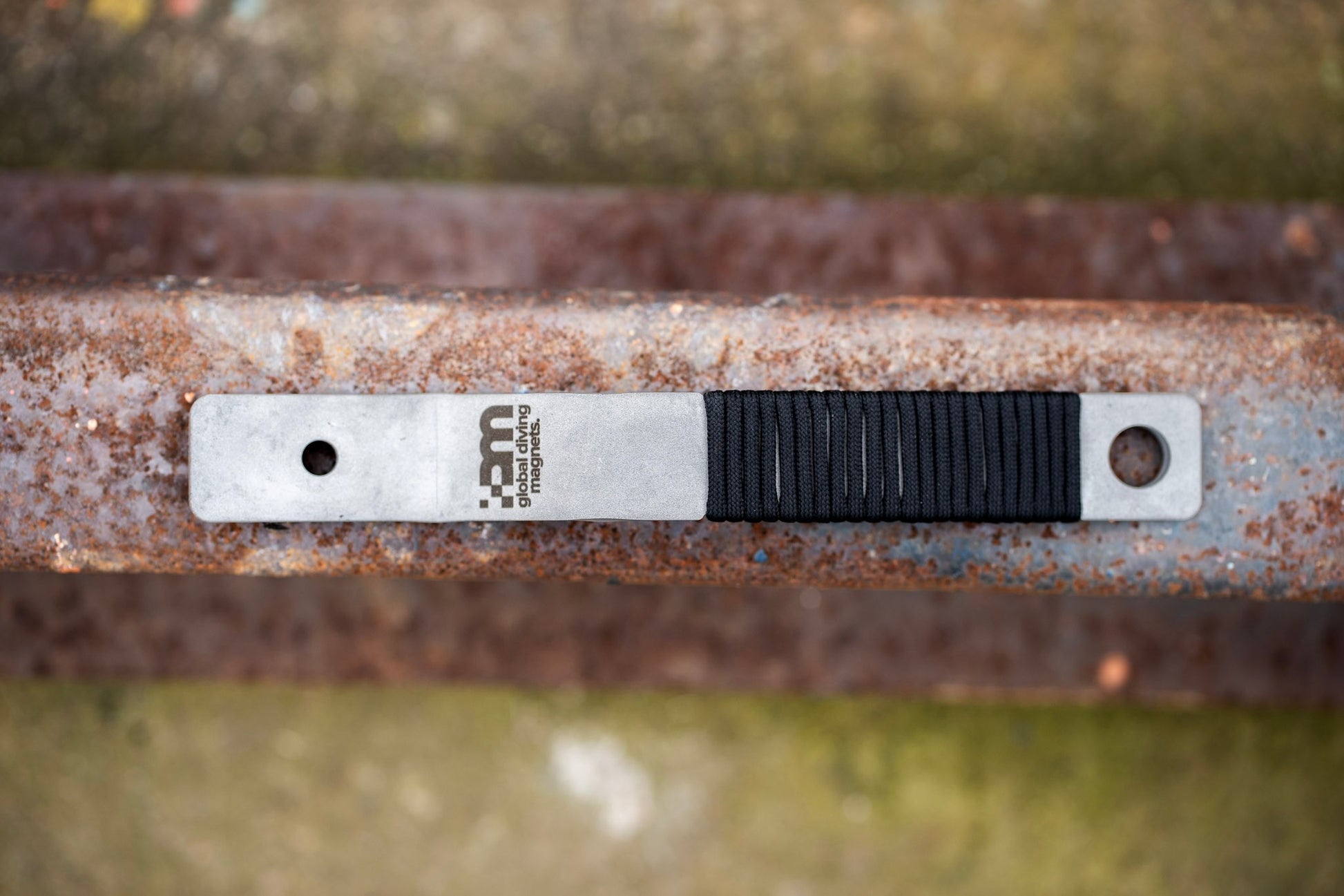 The handle is made from 6mm 316 Stainless Steel, the best marine-graded steel that's available on the market. Handles have been laser cut and CNC folded with rounded edges, this is to ensure the diver's safety when using it, as well as making sure that their suit and equipment stays safe. The handles have also been sandblasted for an improved finish. Each handle side has been laser cut by 1.5mm and tightly wrapped in 4mm paracord to ensure handle use comfort. The eye-nut and screw are m8 A4 making them a 316 Stainless Steel, they have been secured with Loctite 243. The final detail is a 15mm hole at the end of the handle, a perfect fit for all carabiners.